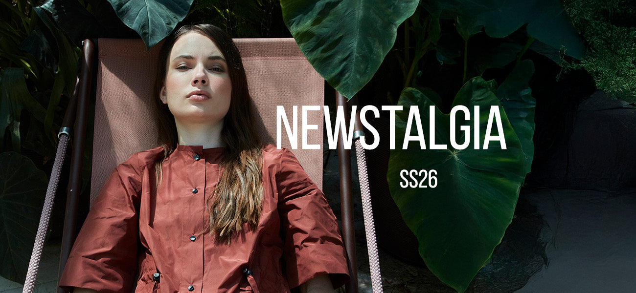 Entra nel mondo di “Newstalgia" la nuova collezione SS26 disegnata da Elena Pignata. Una palette inaspettata, volumi minimal e ricercati.