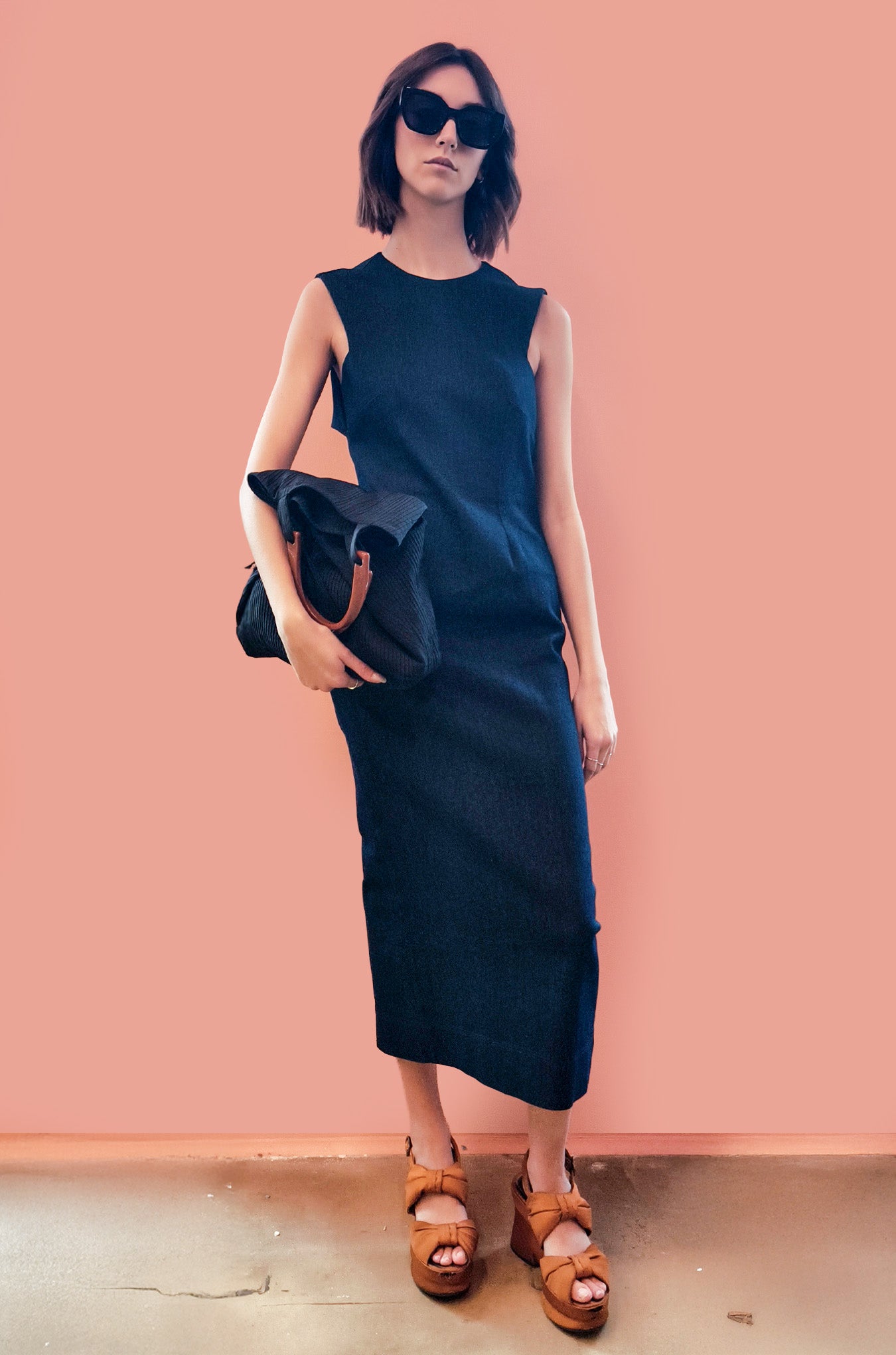 Abito tubino in tessuto denim stretch. Vestibilità slim fit, chiusura sul retro tramite zip invisibile, la schiena rimane in parte scoperta grazie a un gioco di tagli che si intersecano, sensuale mai volgare.