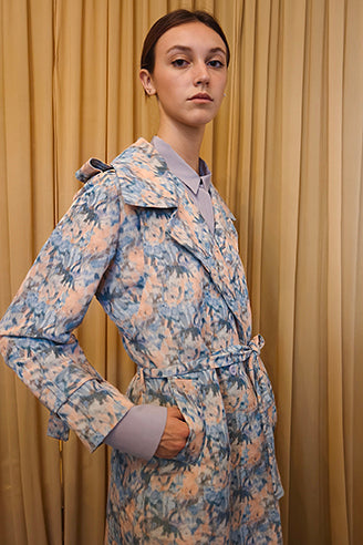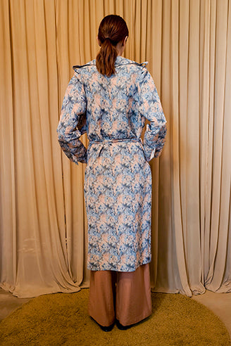 Gilet lungo in tapestry annodabile in vita con mini giacchetto a maniche lunghe e con dettagli sui polsi. Da indossare combinati per un vero effetto trench. Chiusura a bottoni e tasche sui fianchi.