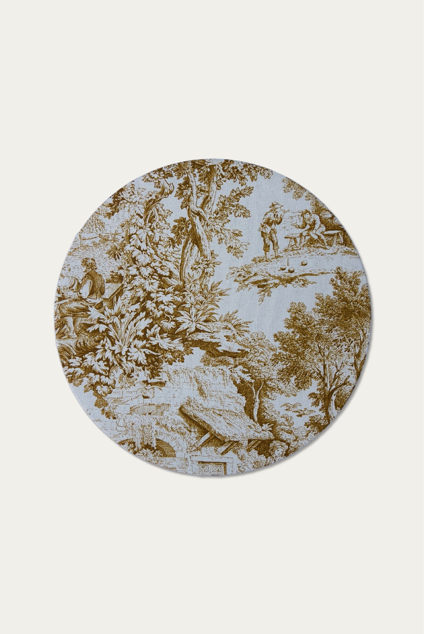 Immergiti nella quiete della natura con le nostre tovagliette ispirate a scene di vita campestre. Ogni stampa racconta un piccolo angolo di vita rurale, rappresentato con uno stile vintage e monocromo. I toni di colore sono sull'ocra.