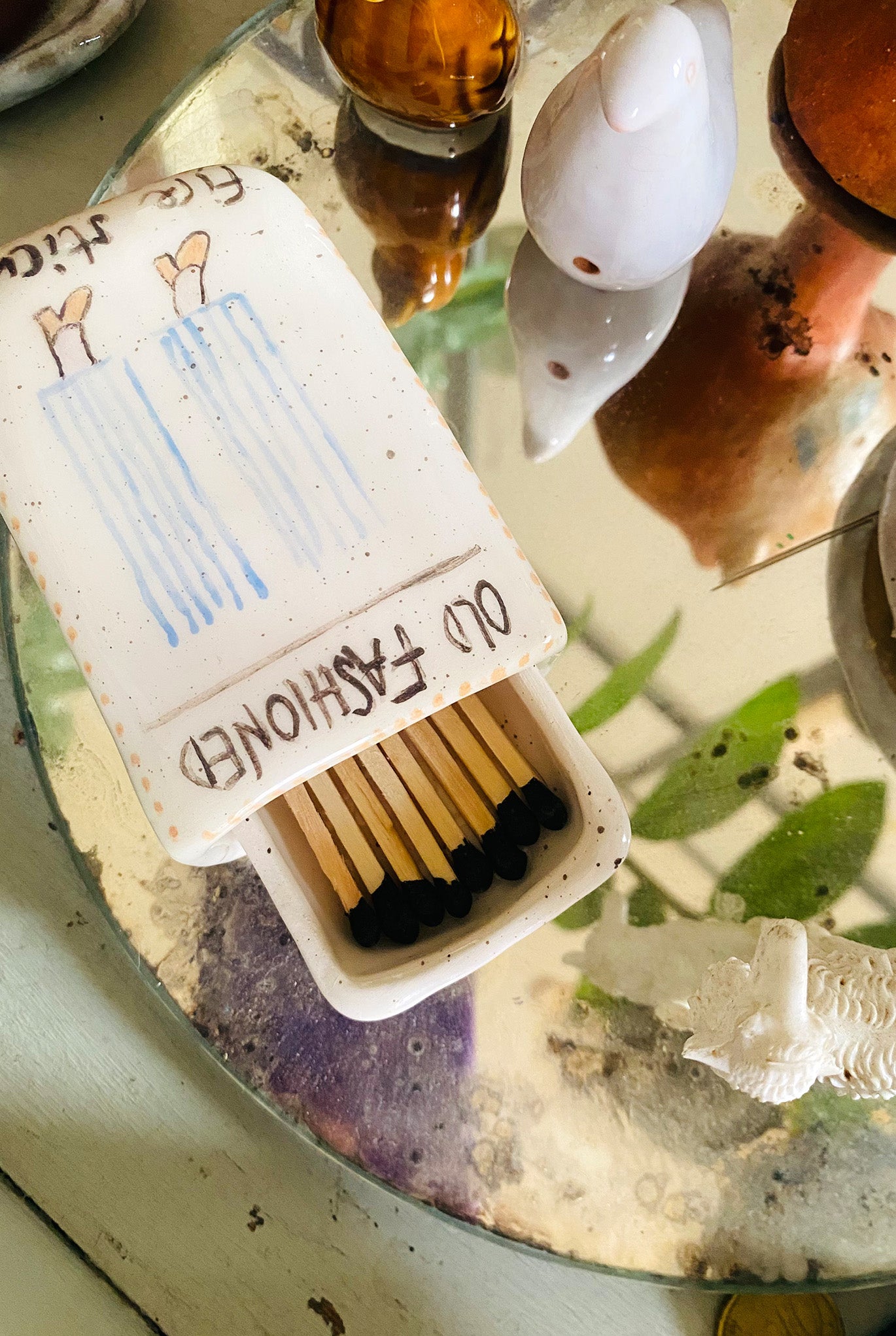 Più di una semplice scatola di fiammiferi: un piccolo oggetto di design in ceramica realizzato e dipinto a mano che custodisce fiammiferi con stile.